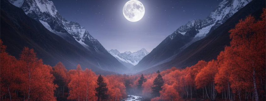 am Mittwoch, den 05. November 2025, erstrahlt der den Winter ankündigende Vollmond, am sternenklaren Himmel. Hier in Güldenholm leuchtet die Natur zurzeit in einem so strahlenden Licht, dass wir alle mühelos still werden und andächtig diese Schönheit der Natur bestaunen. Aus dieser stillen Kontemplation heraus steigen Fragen auf, wie: